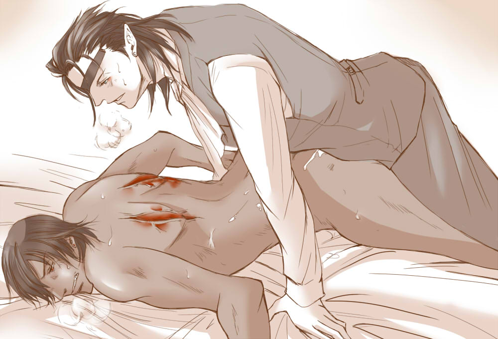 傷の痛みに喘ぐデキウスに、ルベウスが物欲しげに唇を舐めながら、それで濡らした指をゆっくりと穿っていく。腰が反射的に軽く浮き上がり、そのせいでデキウスはまた苦痛の声を漏らしたが、今度はルベウスの耳にも濡れて聞こえた。