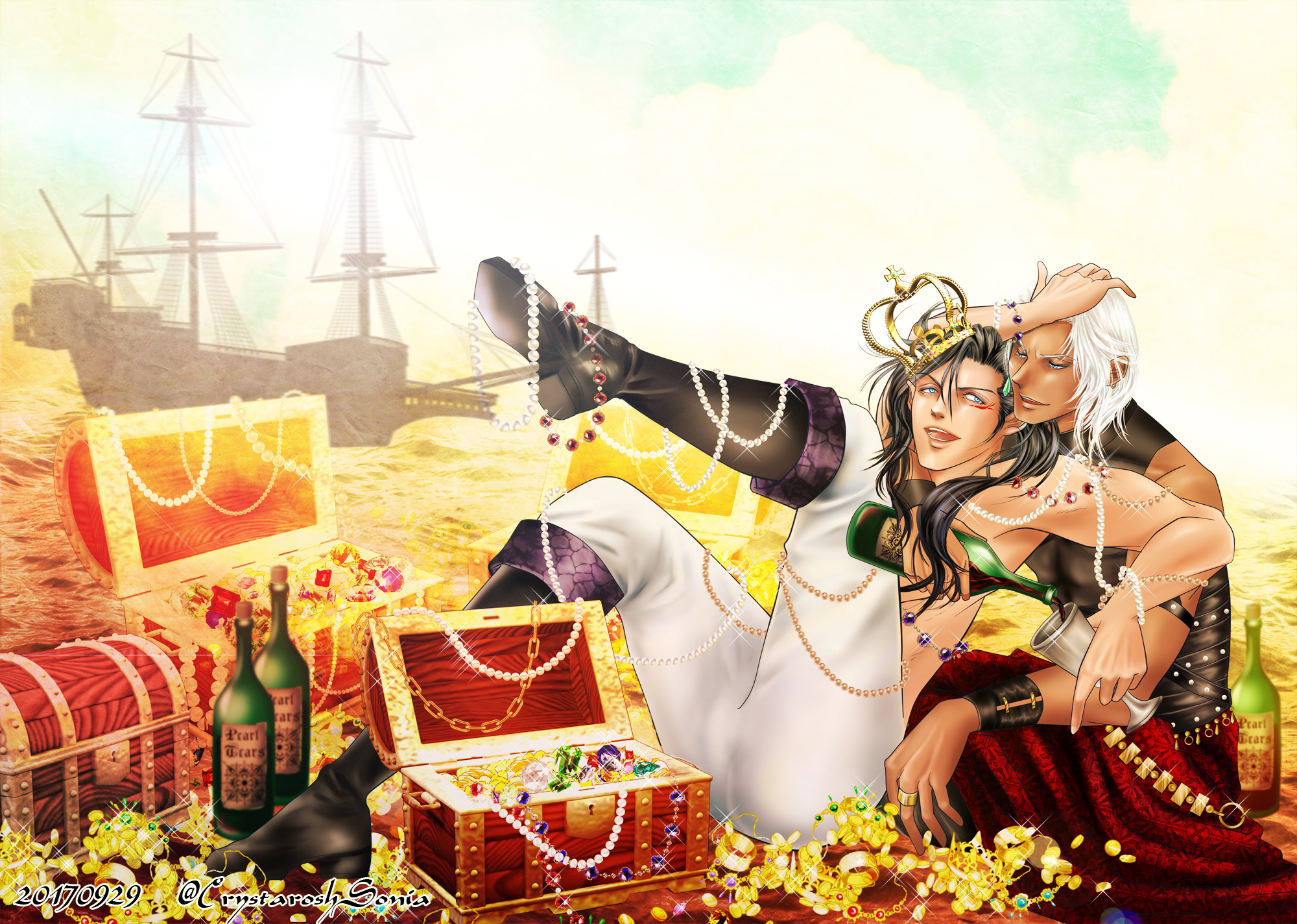2人はよい?悪友になるだろうという想定のもと、できるだけ海賊的にゴージャスな画面にしようと描いた絵でしたv