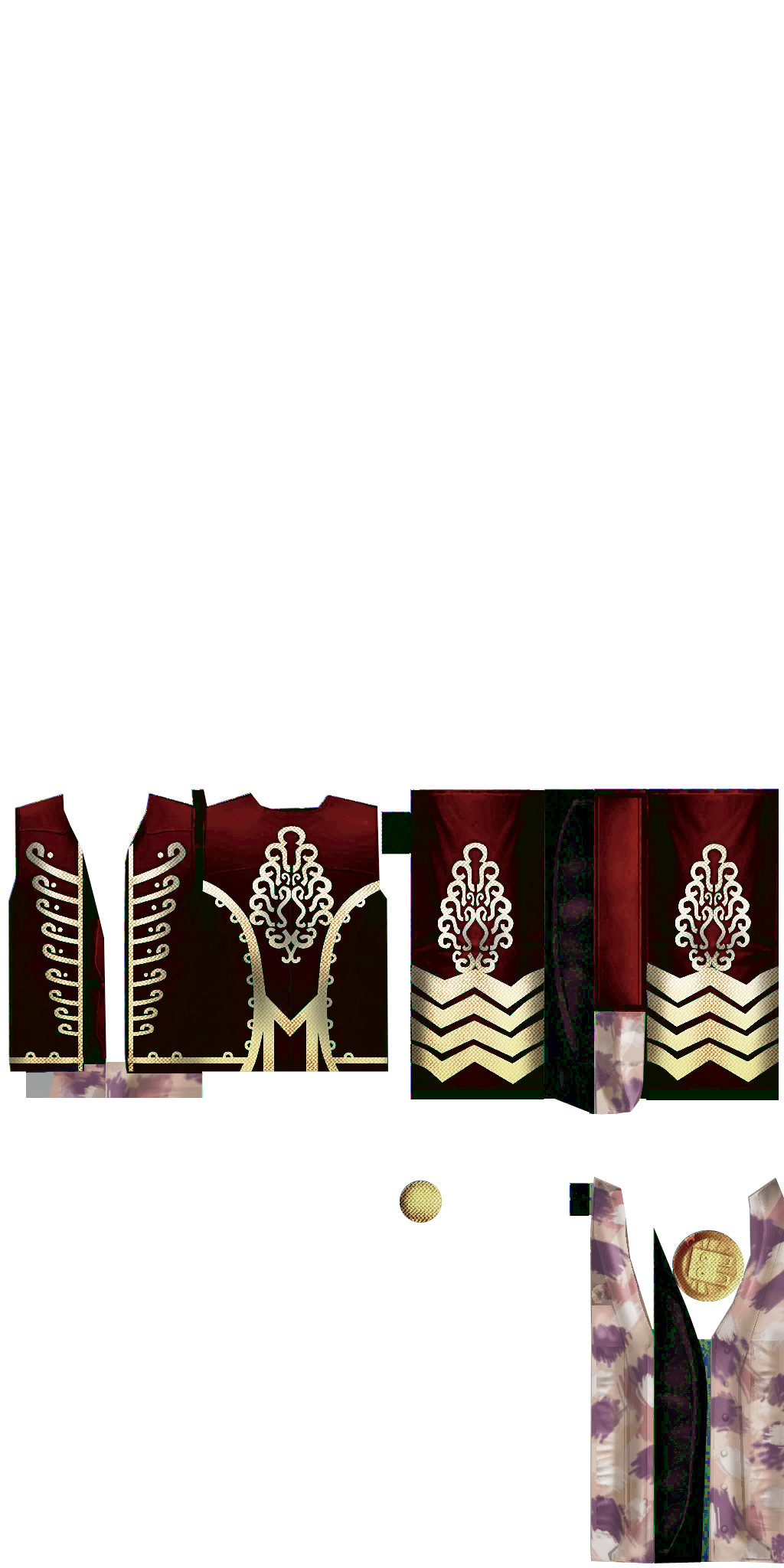 テクスチャはこんな感じで立体に貼る状態で出てくるので、細かいパーツになると未だにどこがどこにあたるのかさっぱりです! 左から正面、後ろ、袖、下段は少し見えるシャツ部分ですね。