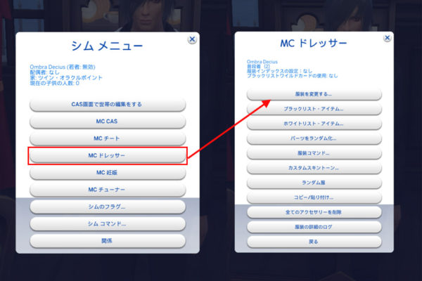 さて、ここであると便利なMC Command Center が生きます! ドレッサーに行かなくてもその場で着替えられます。
